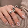Atrévete a destacar con el Anillo Bigger, una pieza statement que eleva cualquier look al instante. Su diseño minimalista con dos bolas grandes en color plata captura miradas y refleja una estética audaz y contemporánea.
