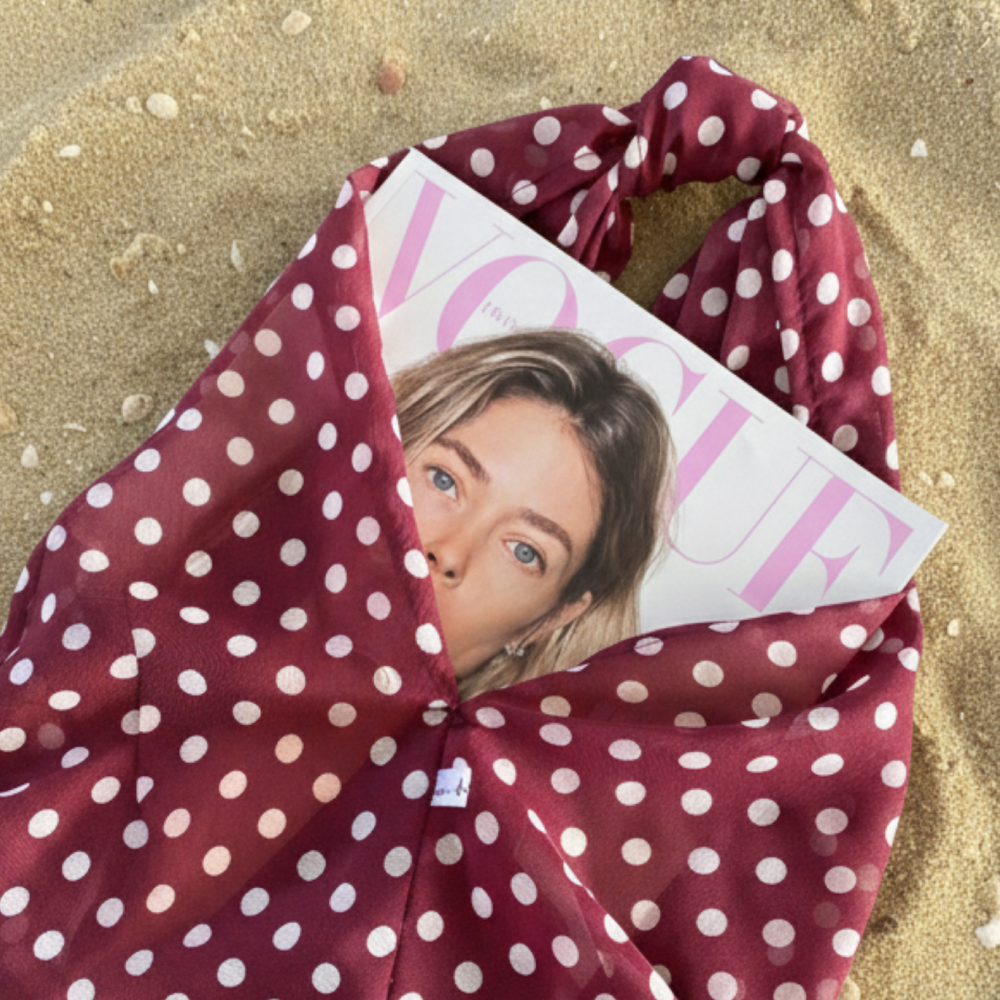 La Tote Bag Dot Dot Dot es el equilibrio perfecto entre lo clásico y lo divertido. Confeccionada en tela shiffon color tinto y decorada con lunares blancos tipo polka dots, esta bolsa se convierte en un accesorio ligero, femenino y lleno de personalidad.